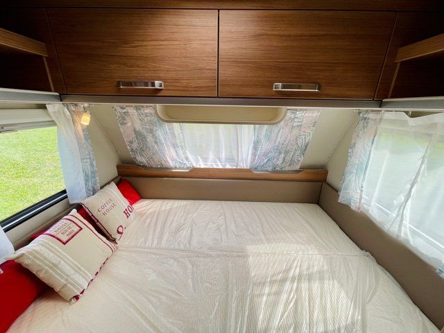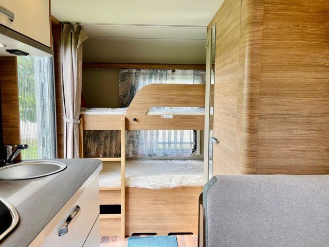 - Faretti a LED sopra la dinette, vani di stivaggio e pensili cucina con luci d’ambiente a LED, rivestimento in tessuto della parete anteriore, cornice luci sopra la diete e nella zona cucina rivestito in tessuto, parete cucina multifunzione